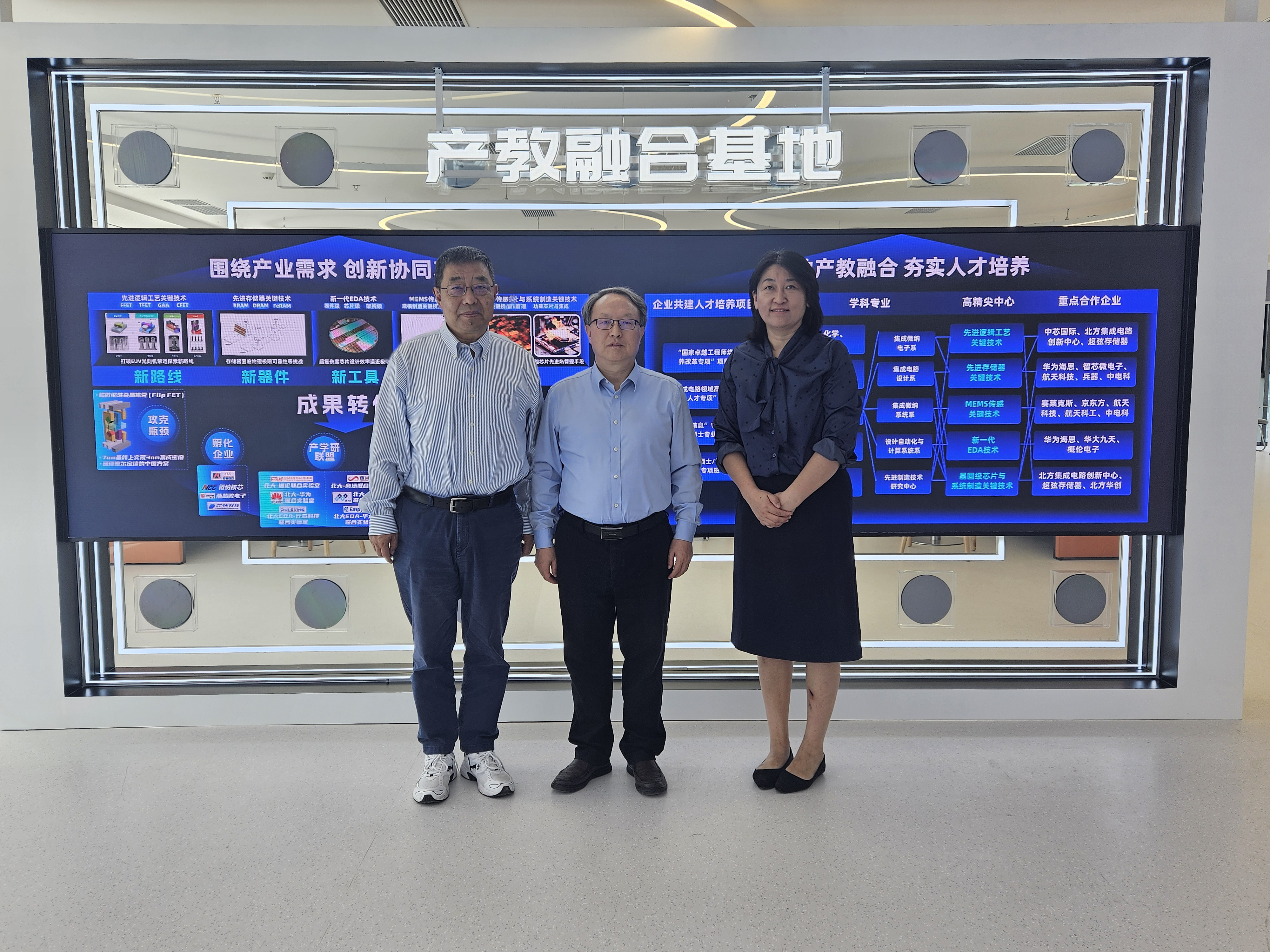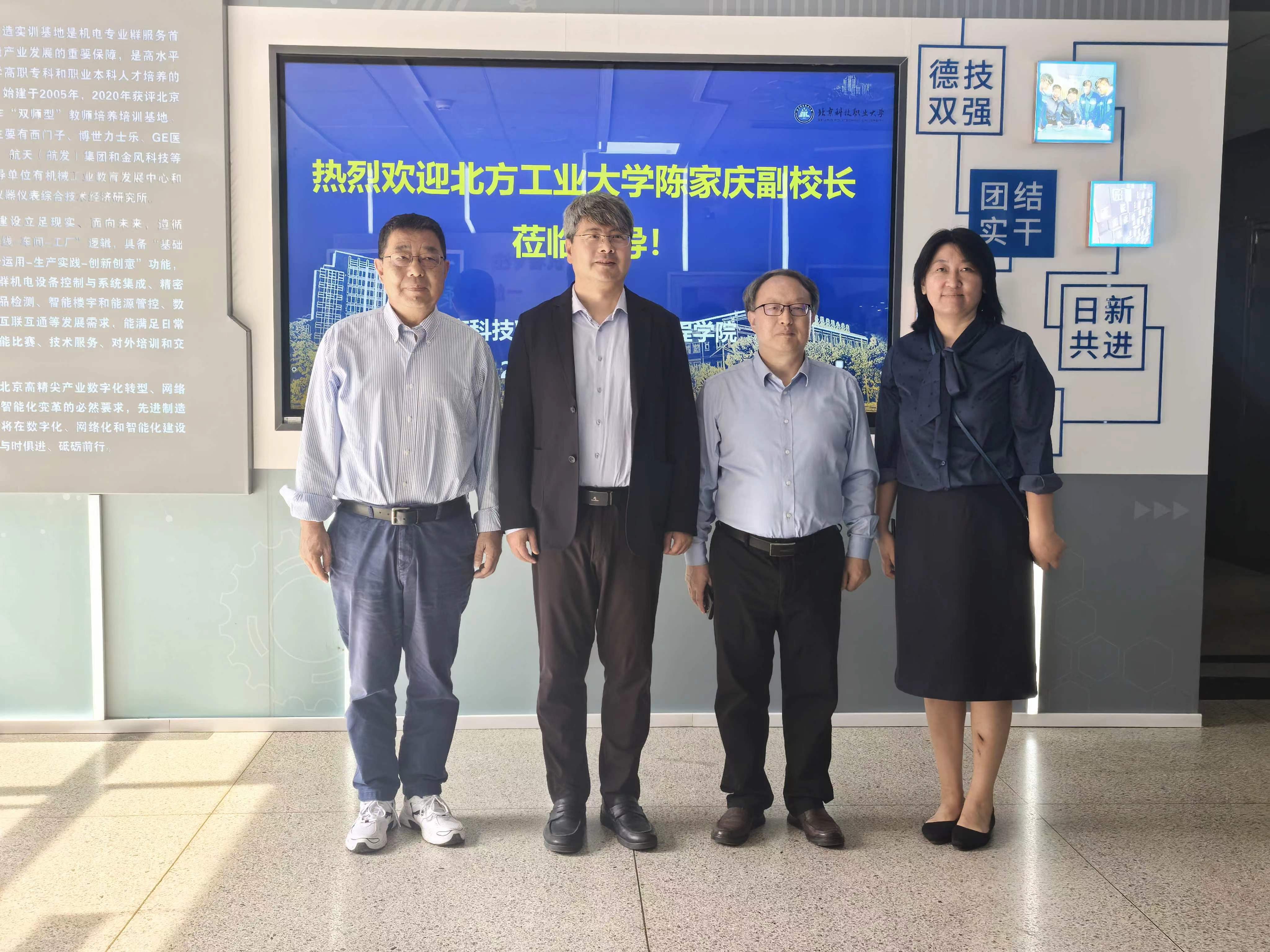 会后,陈家庆副校长带队参观了北京大学“集成电路产教融合基地建设成果”临展区。并应邀前往北京科技职业大学,调研集成电路、智能制造产线等相关专业实训基地建设情况。